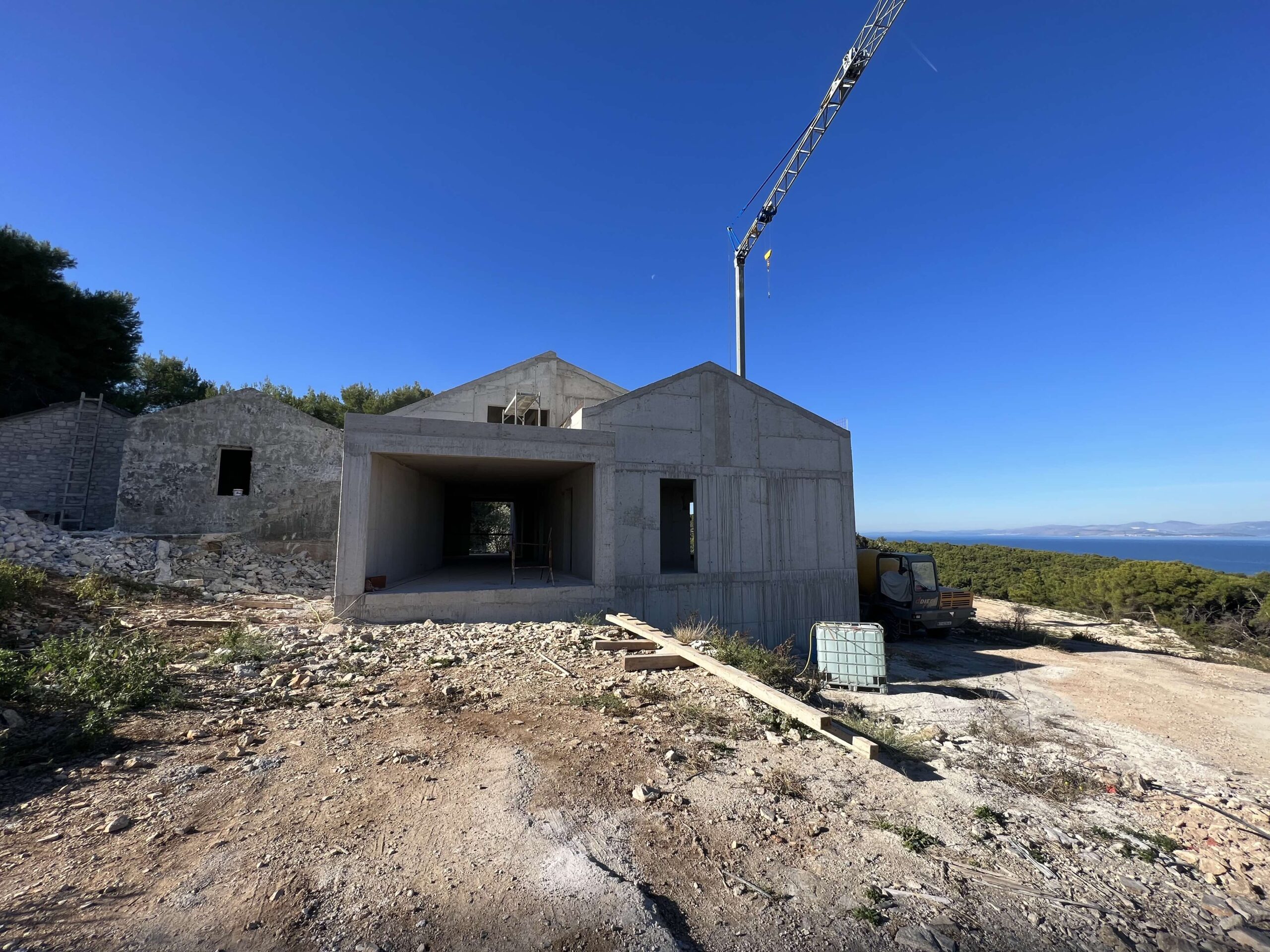 Discover the luxury of waking up to panoramic views of the Adriatic Sea with this stunning villa, freshly completed in a robust shell-and-core state and awaiting your personal touch.